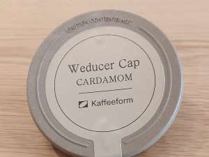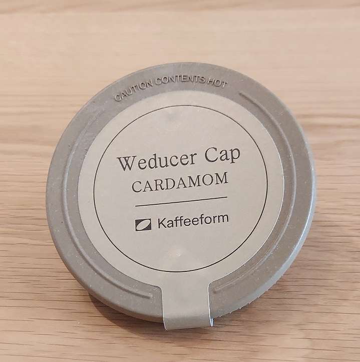 Reusable, dishwasher safe, practically unbreakable cap for the weducer cup made with recycled coffee grounds and beech wood scraps.